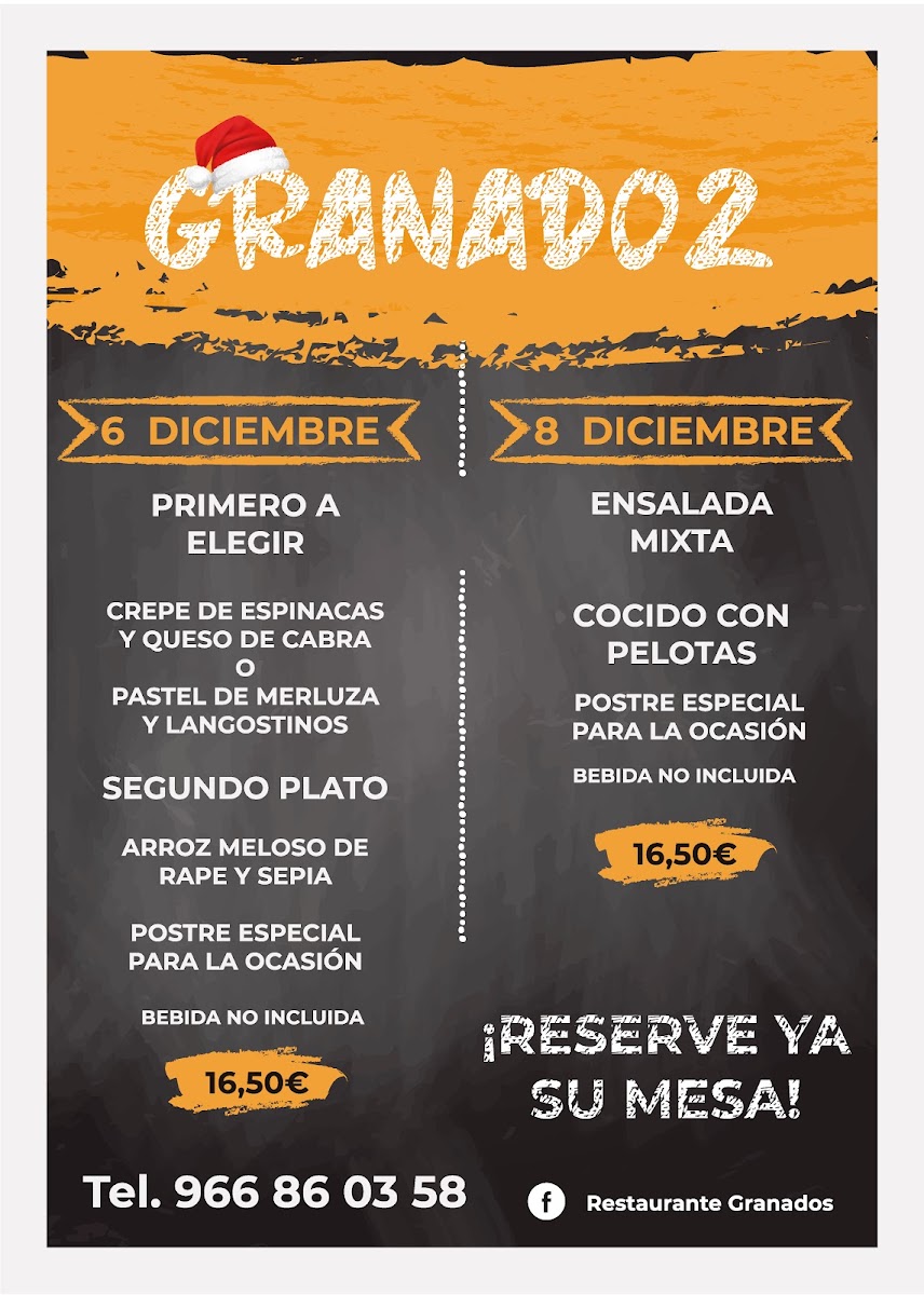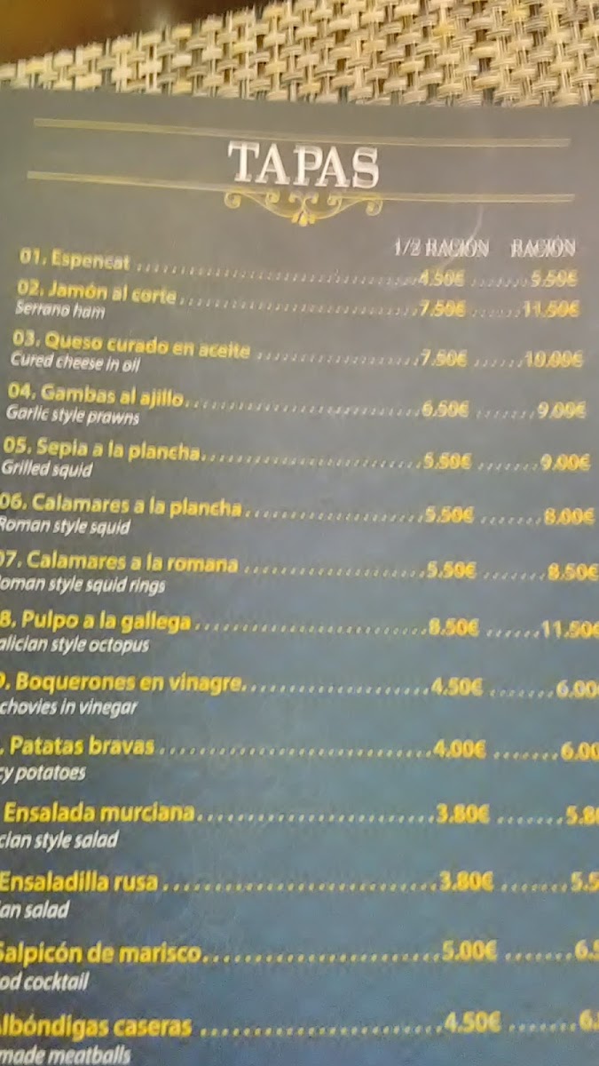 Cafetería Granados offers a delightful and diverse menu that caters to various tastes and preferences. For a quick and satisfying bite, their Bocadillos feature options like Jamón Ibérico al corte, Jamón Serrano, and Lomo fresco, perfect for a casual meal. If you’re in the mood for something lighter, the Tapas menu offers options like Espencat (available in both half and full portions), Gambas al ajillo, and Queso curado en aceite. The restaurant’s Entradas include classic Spanish dishes such as Ensalada Granados, Gazpacho Andaluz, and Salmorejo, ideal for refreshing starters. For main courses, the fish offerings include Lenguado a la plancha, Merluza a la romana, and Salmón a la plancha, while meat lovers can enjoy options like Entrecote a la plancha and Solomillo de ternera. The Pasta selection features comforting choices like Espaguetis Boloñesa and Macarrones Carbonara. The restaurant also serves generous Arroces designed for sharing, including the Paella de marisco, Paella Mixta, and Arroz caldoso de carne. For younger diners, the Menú Infantil provides satisfying meals like Nuggets with Patatas Fritas or a Hamburguesa with Postre. Whether you’re looking for a light snack, a hearty meal, or a flavorful paella, Cafetería Granados delivers with variety and quality.